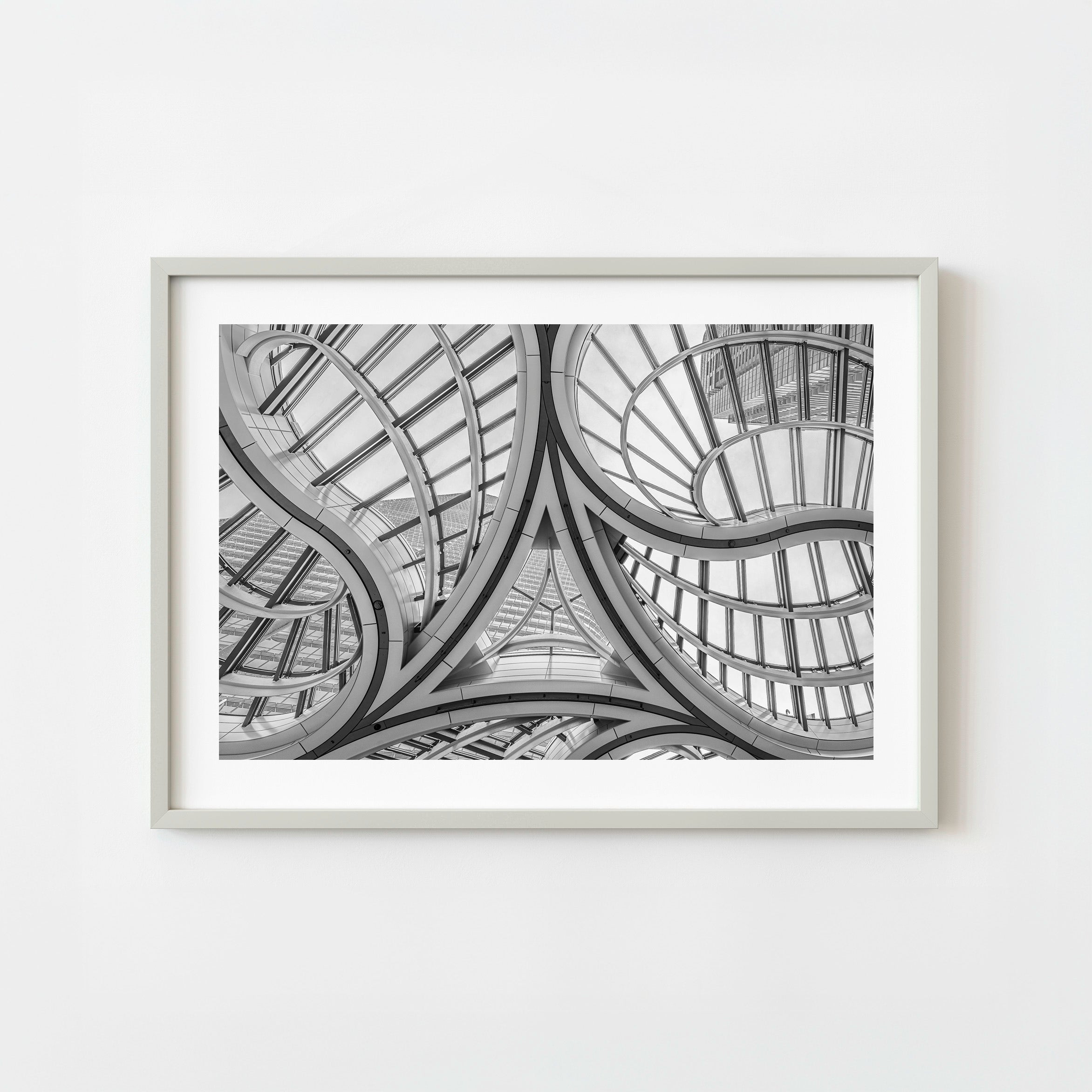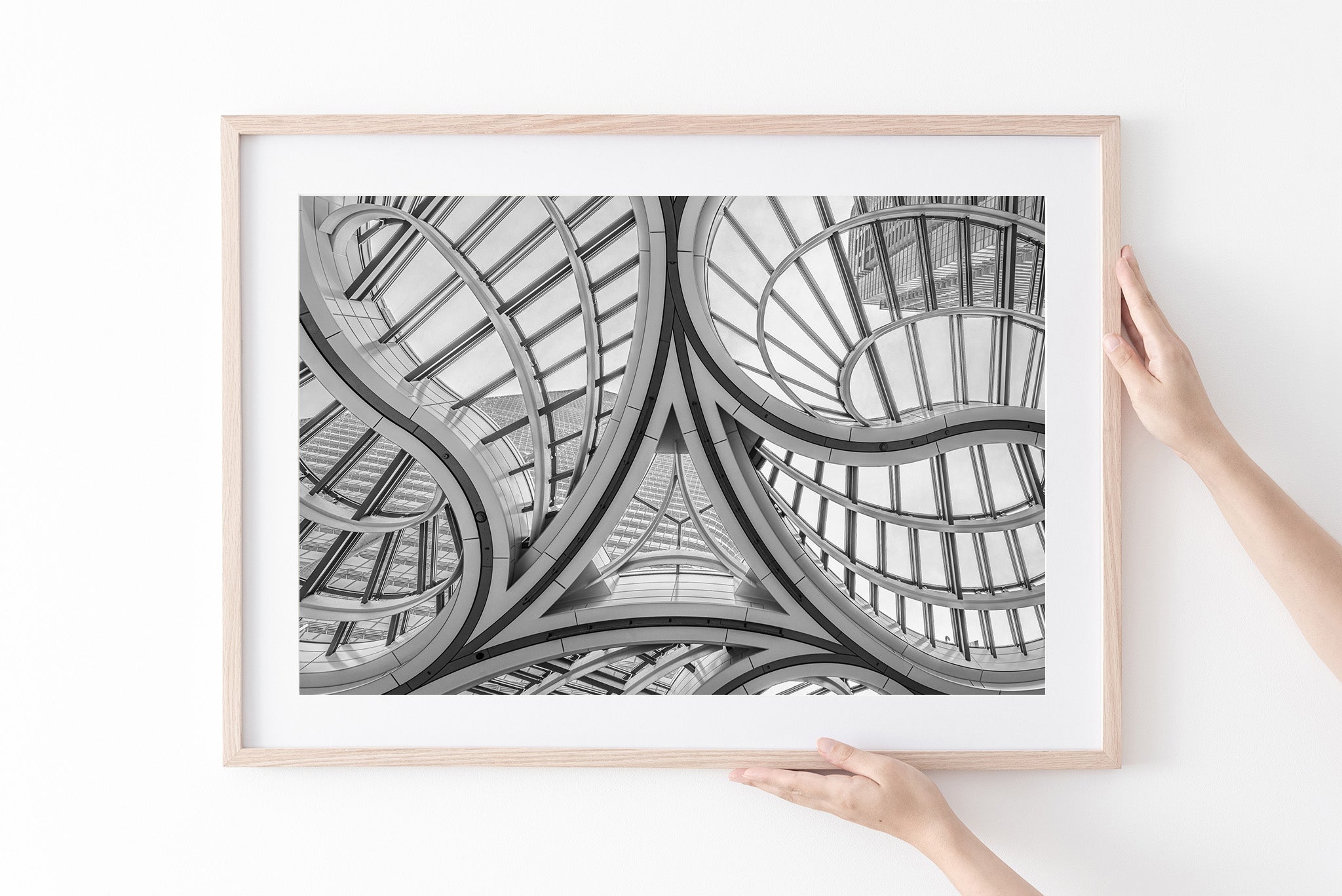Japan Tokyo Odaiba Geometric Architecture Ceiling Pattern Black And White Urban Modern Design Structural Detail Wall Art