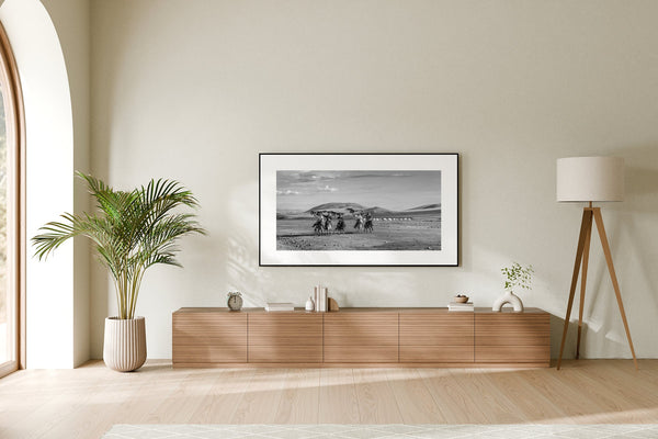 As wall art, this piece offers something rare: a perfect balance of movement and stillness. It fits equally well in minimalist modern spaces or rooms designed with global textures and earthy tones. Whether you’ve ridden horses on open steppe or simply crave a deeper connection to the natural world and its ancient traditions, this image carries that story for you.