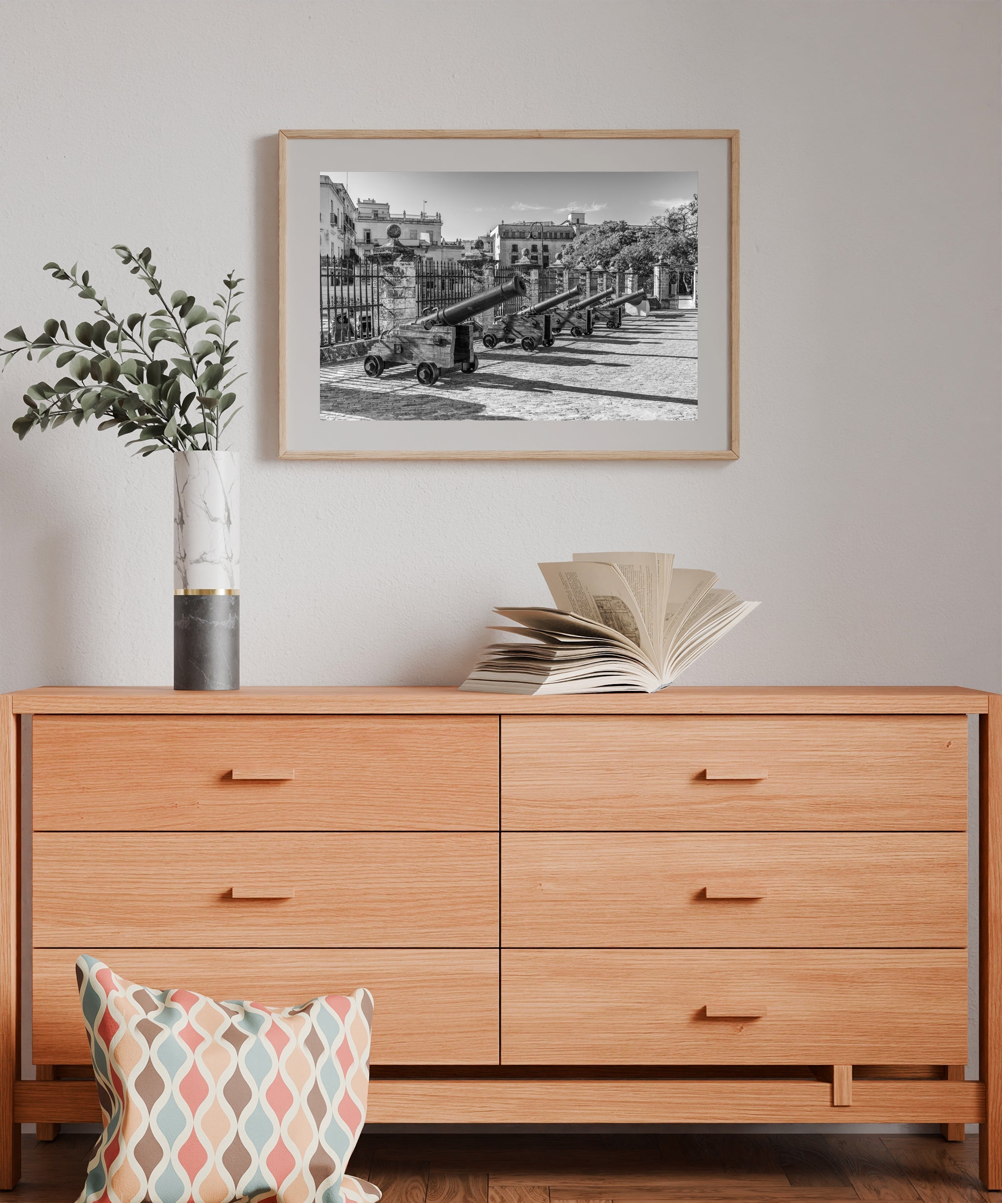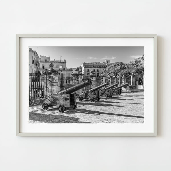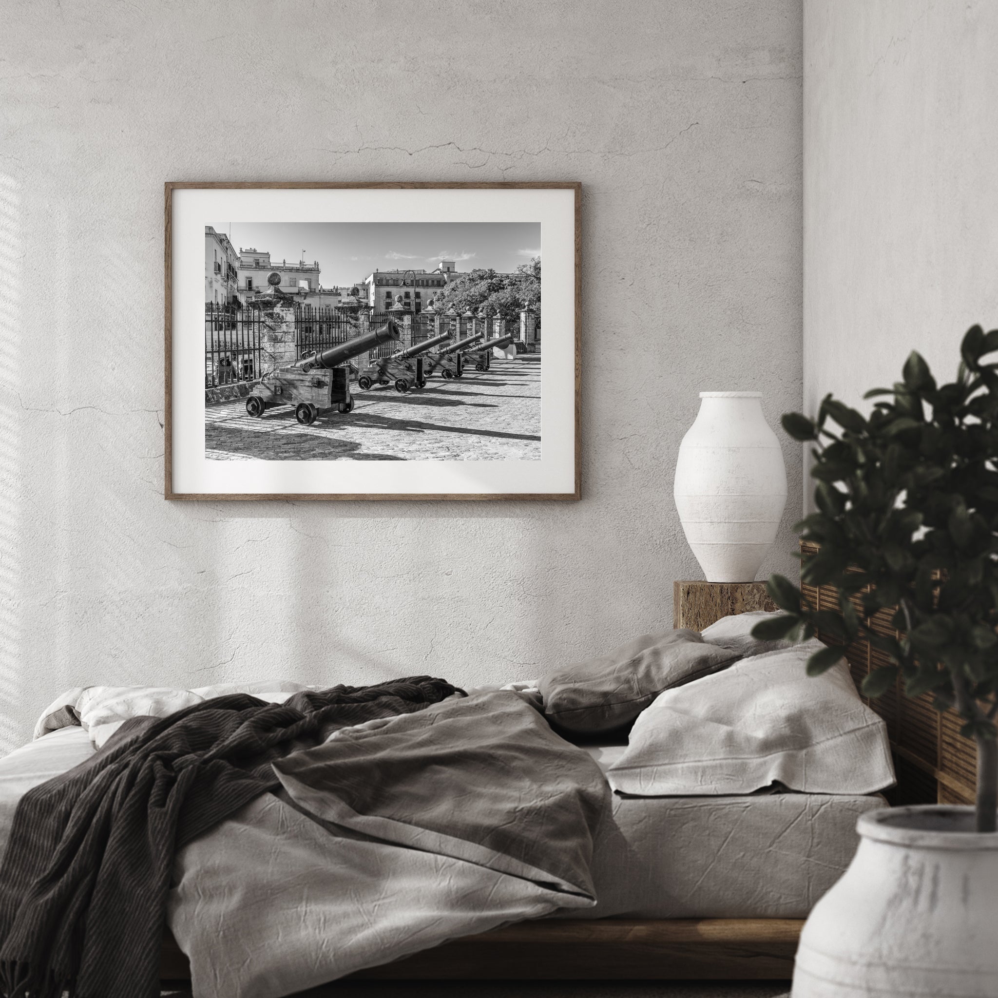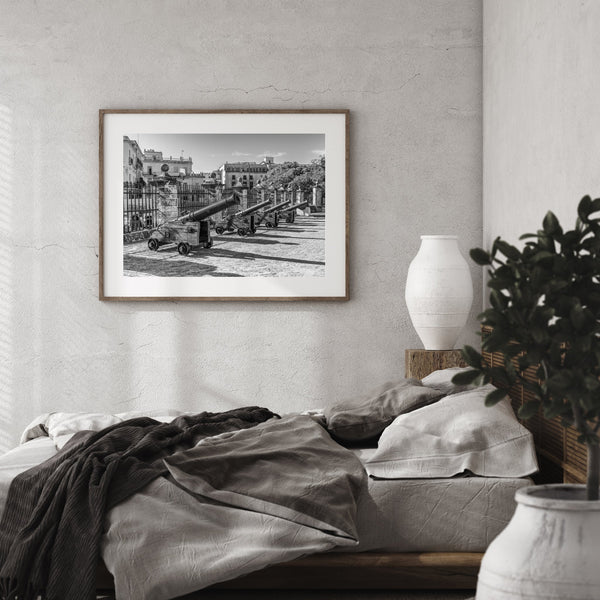 In Havana, the past doesn’t just whisper—it fires back. Lined up with quiet authority, these colonial-era cannons sit in front of the Castillo de la Real Fuerza like guardians from another time. I shot this photograph early in the day, when the light was just hard enough to cast those long, blade-like shadows across the cobblestones.