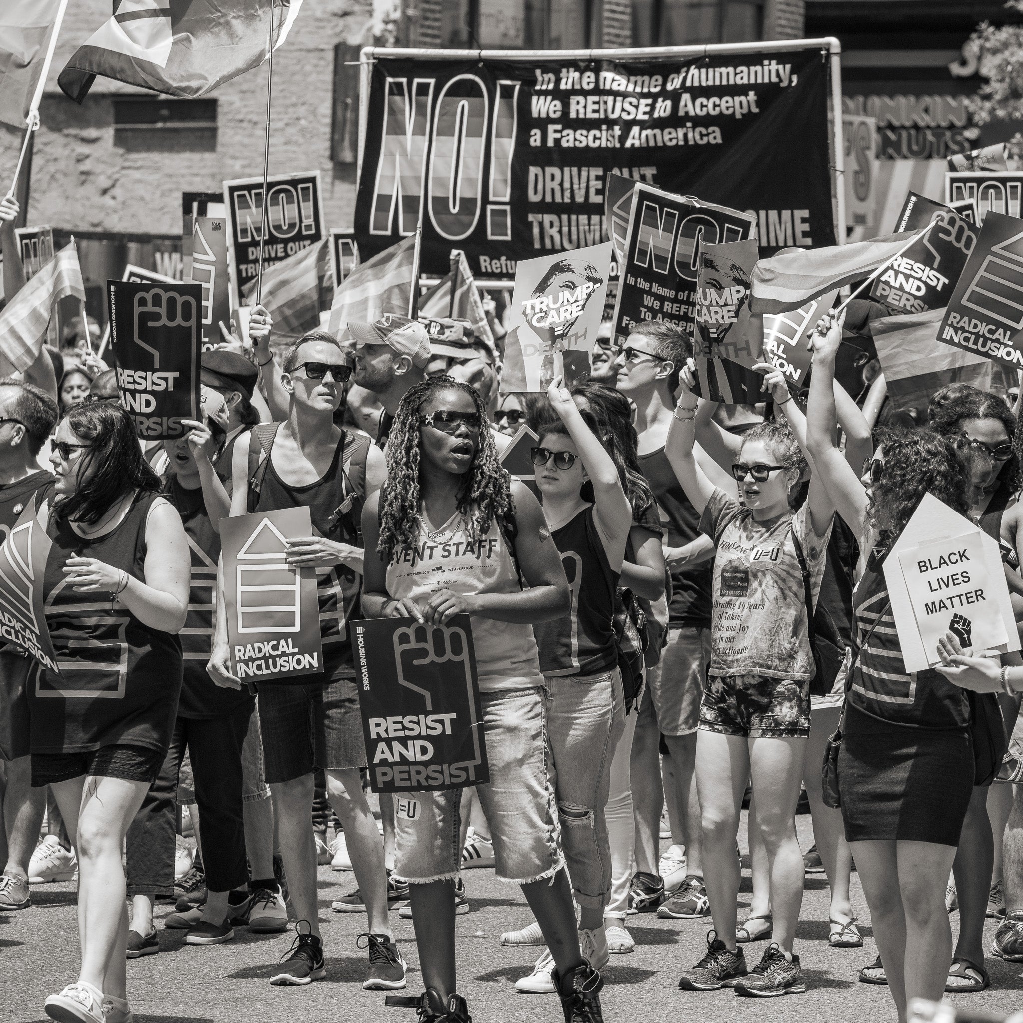 I was in the middle of it all, camera at my side, not standing above or apart from the scene. That matters. Photography, for me, has never been about voyeurism—it’s participation. It’s witnessing with intention. These people weren’t just holding signs. They were holding decades of frustration, loss, and hard-won solidarity. Look closer and you’ll catch signs that read “Black Lives Matter,” “Resist and Persist,” “Radical Inclusion.” The typography might be bold, but it’s the expressions that carry the weight—focus, fire, resilience.
