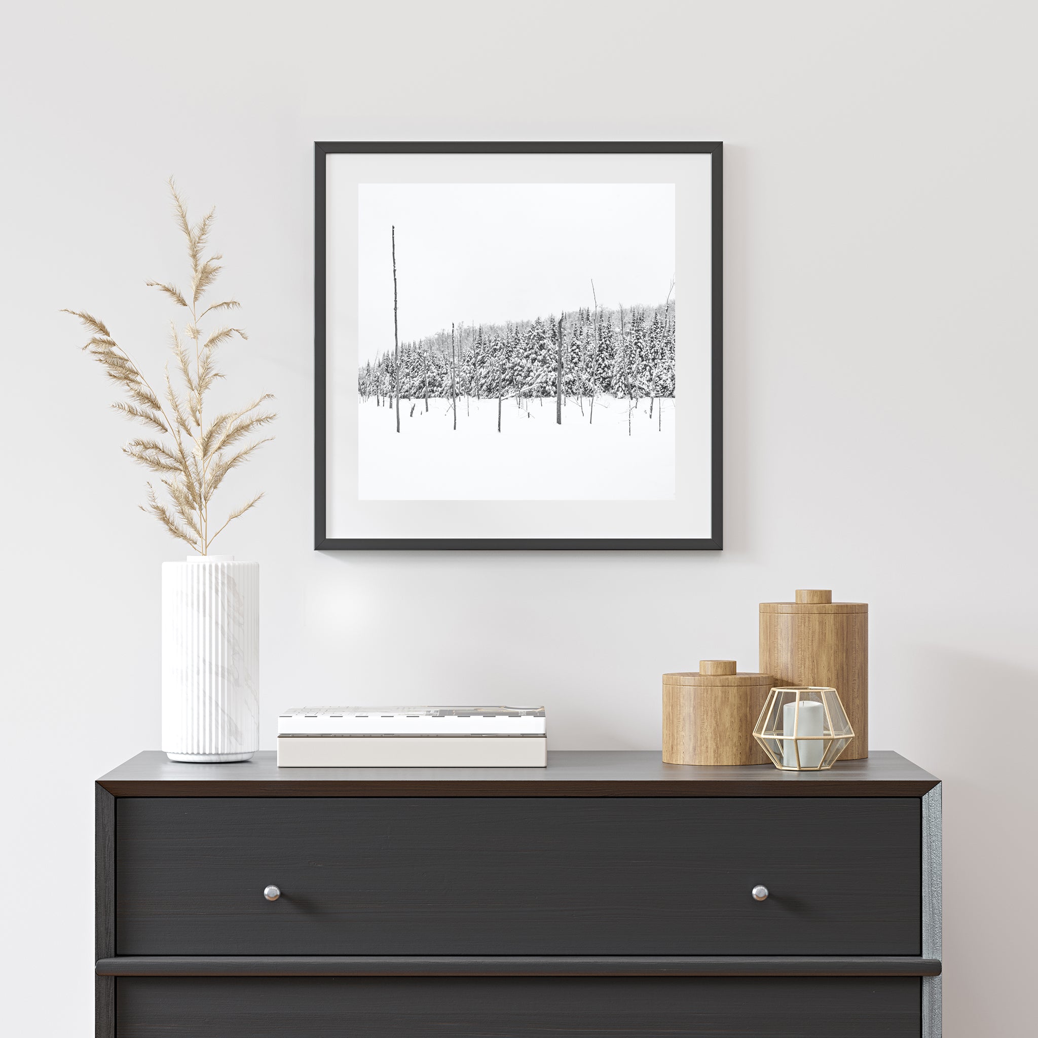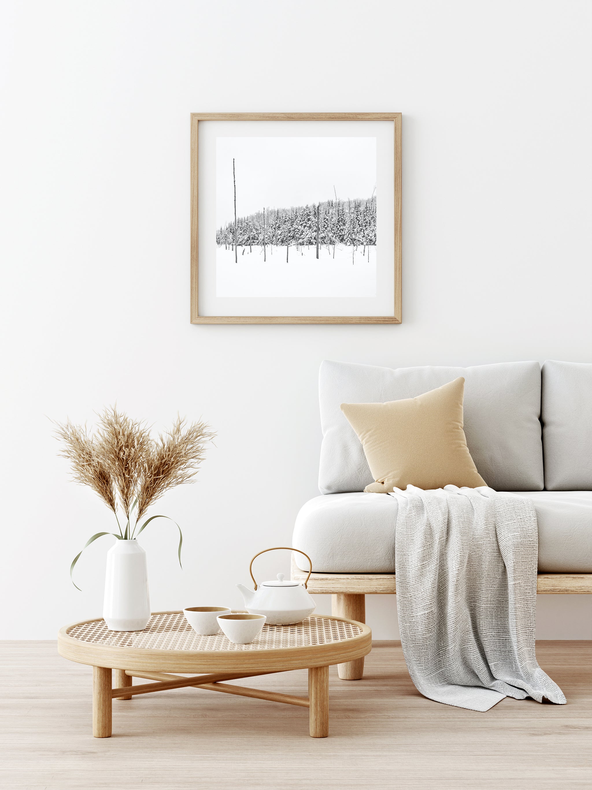 When I stand in front of a landscape like this, there’s always that sense of being just a small figure inside a much bigger world. I love that feeling. It’s humbling, grounding, and somehow comforting all at once. That’s the part I try to bring forward in this print—letting the negative space breathe, letting the tones stay natural and clean, allowing the composition to lead your eye in gently rather than demanding attention. It’s the kind of image that calms the room without making a fuss, and I’ve always thought winter scenes carry a sort of purity that we don’t get from any other season.