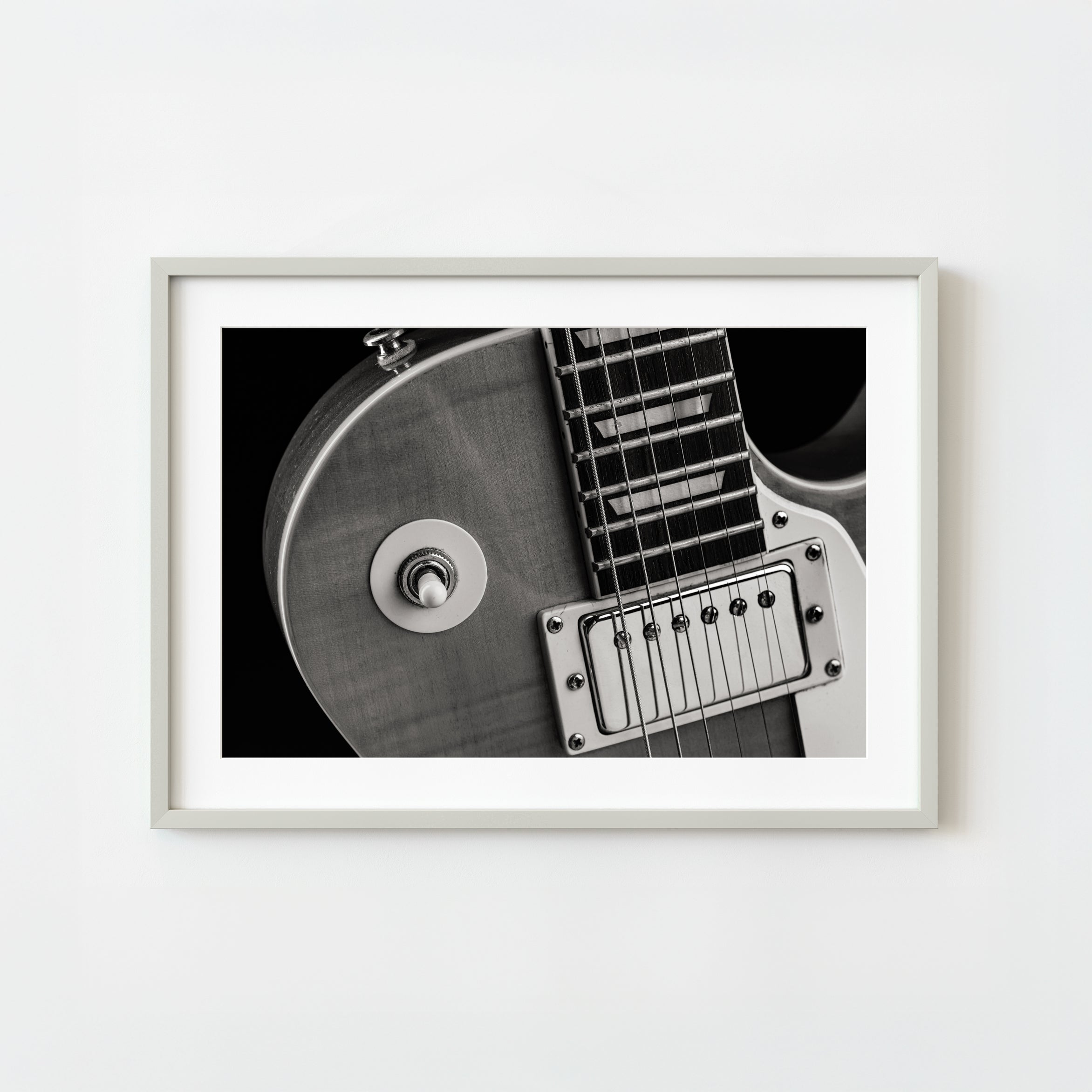 Primer plano de la guitarra Les Paul en monocromo | Arte de pared