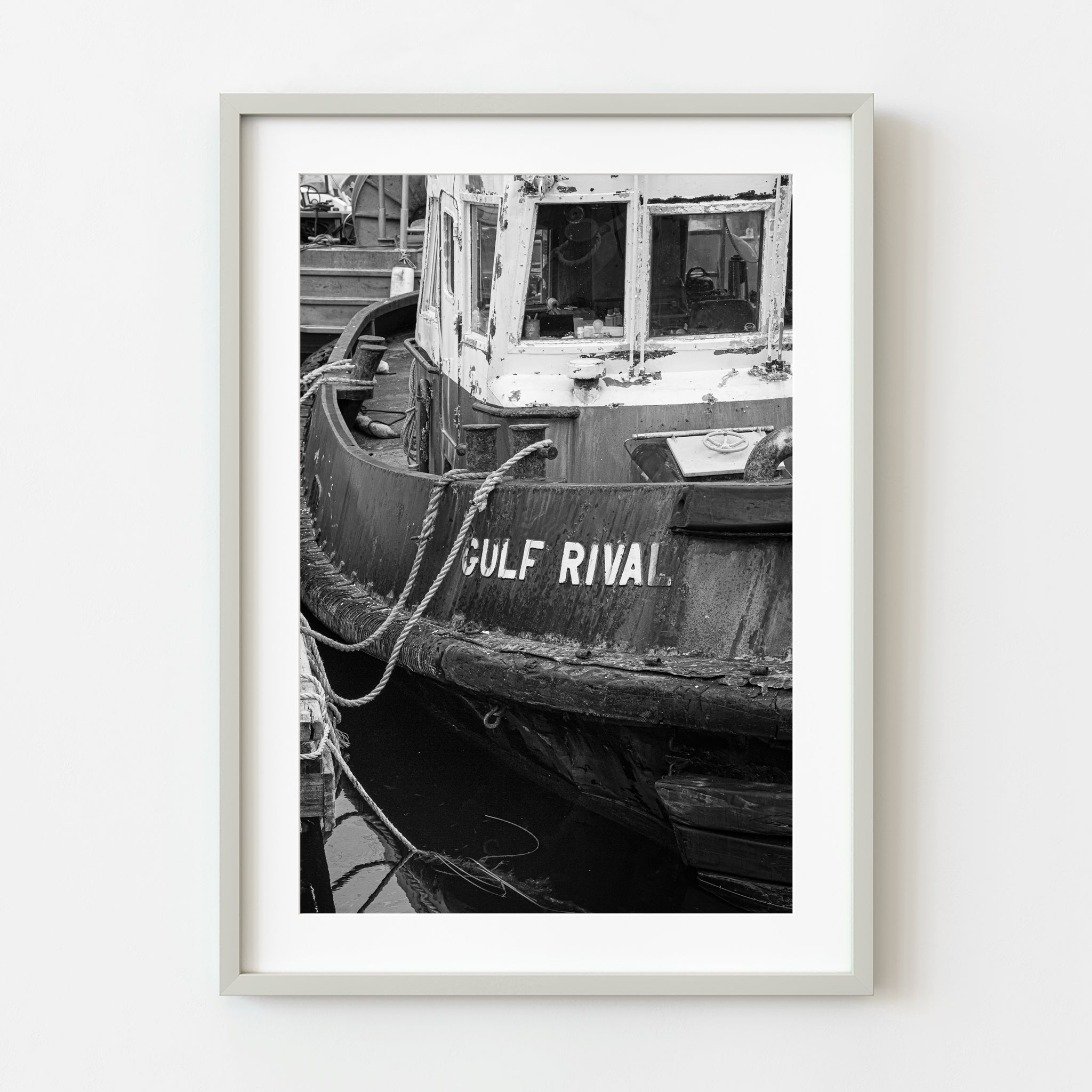 Questo pezzo di Fine Art La fotografia a muro funziona magnificamente in spazi che abbracciano il carattere e l'autenticità. Uffici, loft, cottage e case con stile rustico o industriale si divertono con opere d'arte come questa. Non è solo decorazioni: è un promemoria di artigianato e resistenza umana, una fetta di vita nautica congelata nel tempo.