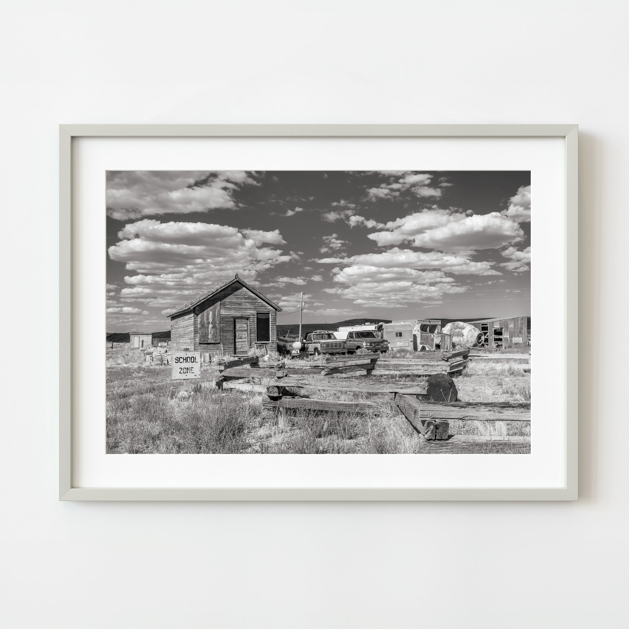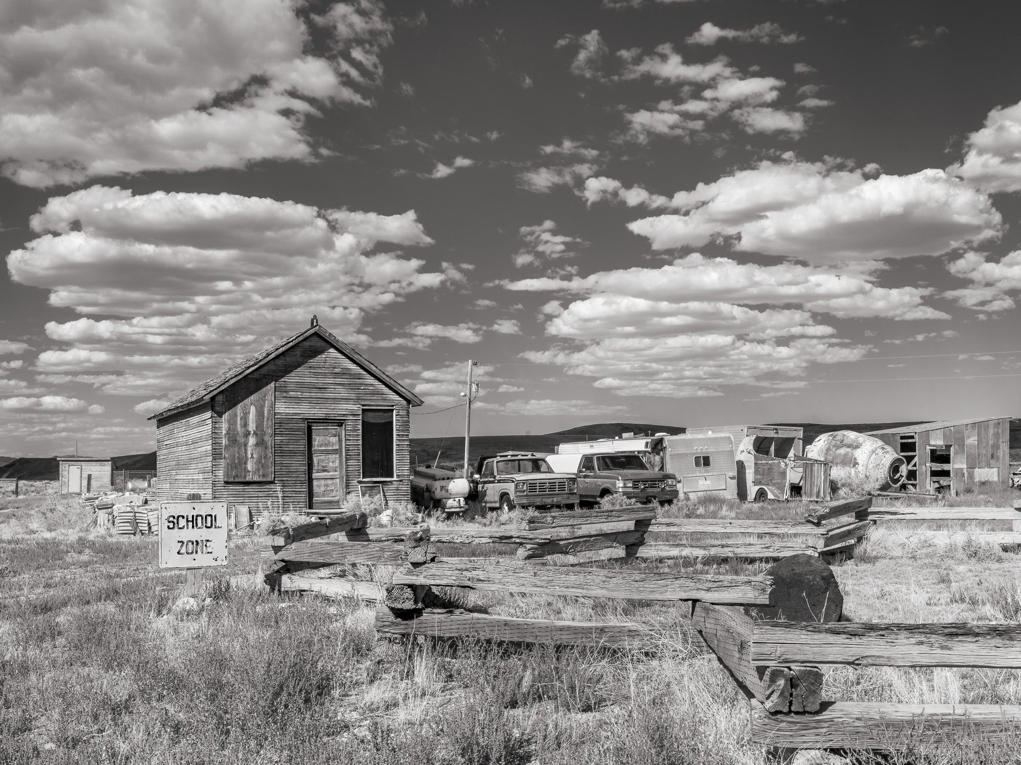 ネバダ州カリーにあるこの放棄された校舎には不気味な静かなことがあります。サインはまだ「学校のゾーン」です。ただし、風に笑いはありませんが、ボードにチョークがなく、装着した床板に足跡もありません。ちょうど風化した木材、錆びた車両、そして時間だけがその場所に彫ることができる沈黙の種類。このシーンを撮影したとき、私の注意を引いたのは建物だけではありませんでした。それは、損失、回復力、そして土地が過去を手放すことを拒否する方法全体でした。