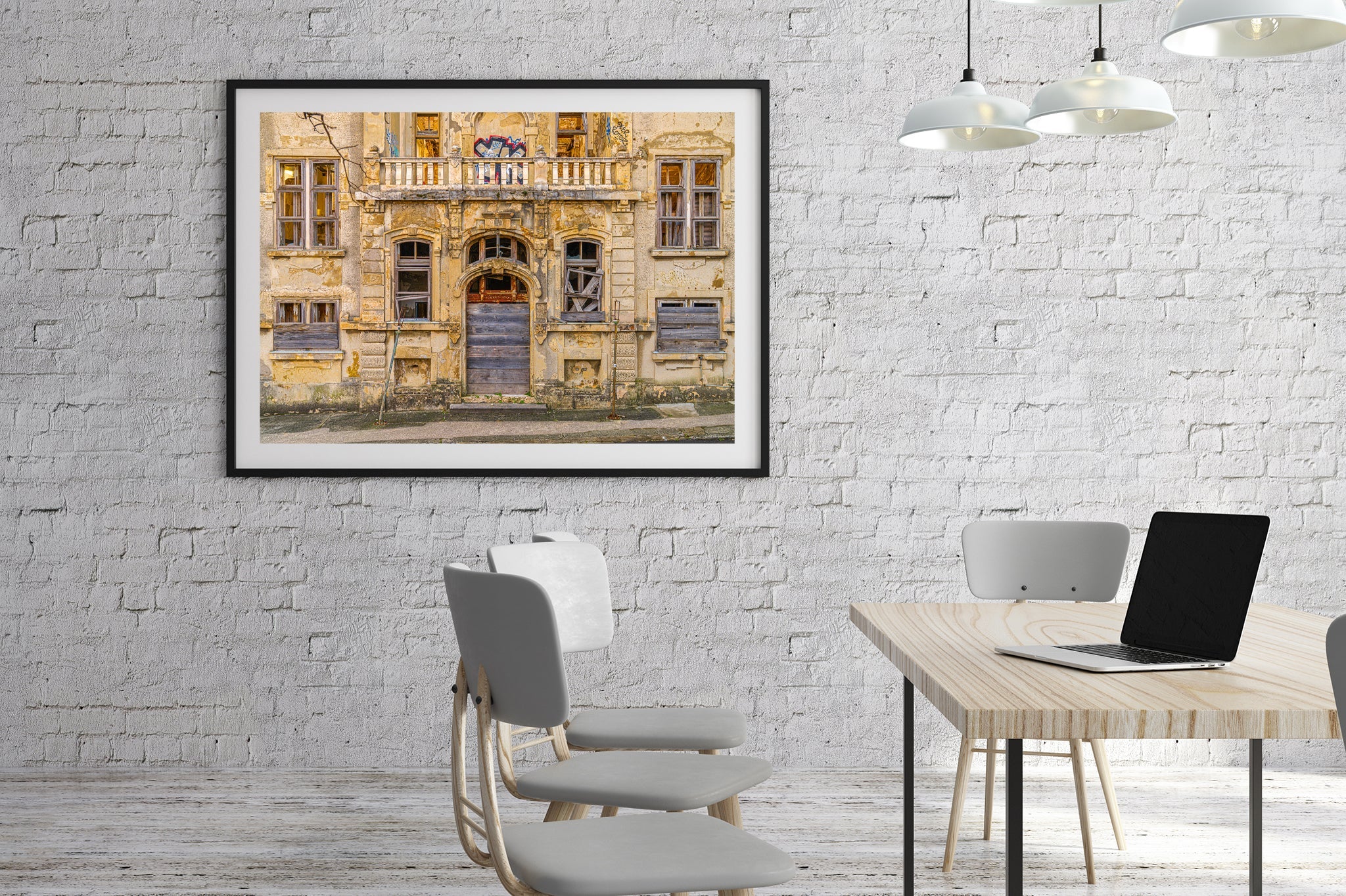 Ik heb dit stuk afgedrukt omdat het gewicht draagt. Het is niet luid of flitsend - maar het blijft hangen. Je begint de asymmetrie op te merken, de graffiti legde over de oude steen, de enigszins kromme balkonleuningen. Elke crack en textuur nodigt nadere inspectie uit. Dat is wat ik achtervolg met dit soort werk - geen perfectie, maar aanwezigheid.