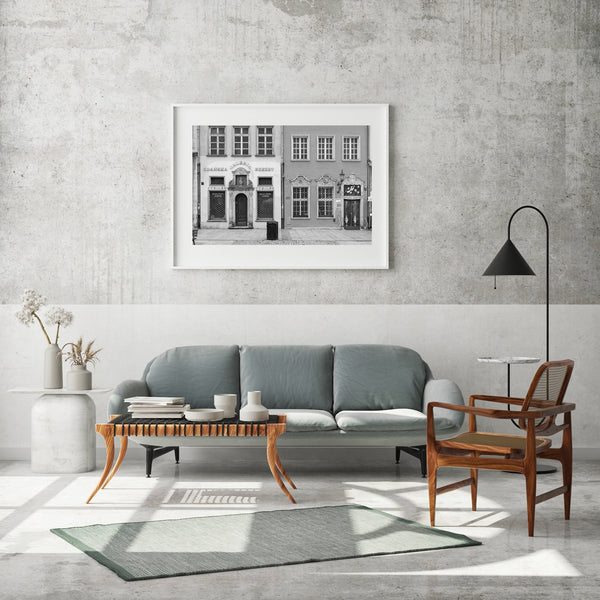 As I stood in the heart of Gdańsk, Poland, the vibrant history of this remarkable city enveloped me. I was drawn to the beautiful facades of the buildings along Długi Targ - the city's famous main street. I chose to capture this scene in black and white, allowing the intricate details and textures of the architecture to take center stage.