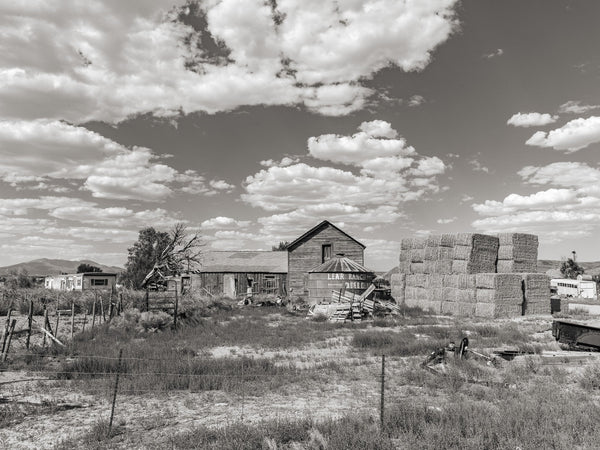 The photograph in the link depicts an old abandoned farm in Lear Ranch, Currie, Nevada. Looking through my camera lens, I could see the remnants of an old barn with weathered wood and chipped paint standing tall in the background. In the foreground, a ghost town with scattered piles of automobile parts, and an abandoned trailer home with broken windows, lie lonely and forgotten. The stacks of fresh hay, once a sign of bustling activity, now remain untouched, reminding me of the fleeting nature of life.