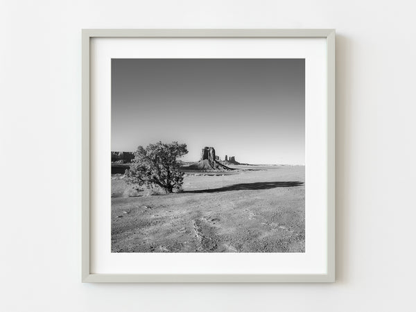 This desert photograph captures a classic scene from Monument Valley, where a lone tree stands tall and defiant against the backdrop of the vast desert and towering buttes. The simplicity of this image is what makes it so striking. There’s nothing but the rugged earth, the sky, the iconic rock formations, and solitary trees casting a long shadow across the barren ground. For me, this shot represents solitude in its purest form, a reflection of nature's quiet yet powerful presence in a place that feels almost otherworldly.