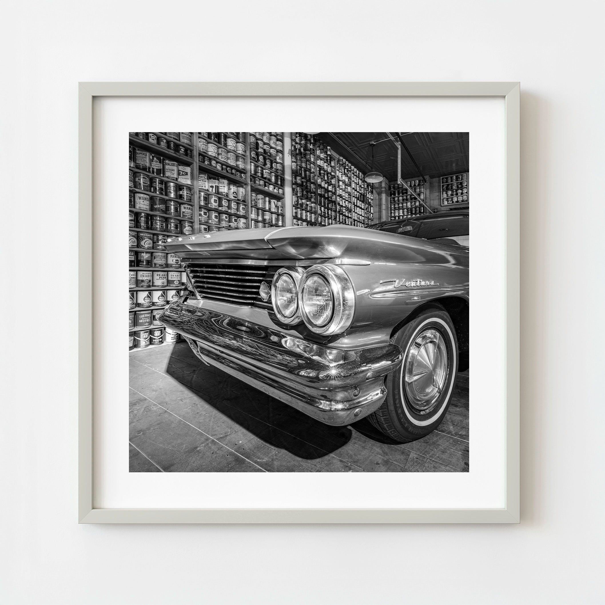 United States Route 66 Vintage Pontiac Car Front Detail Monochrome Classic Automotive Wall Art